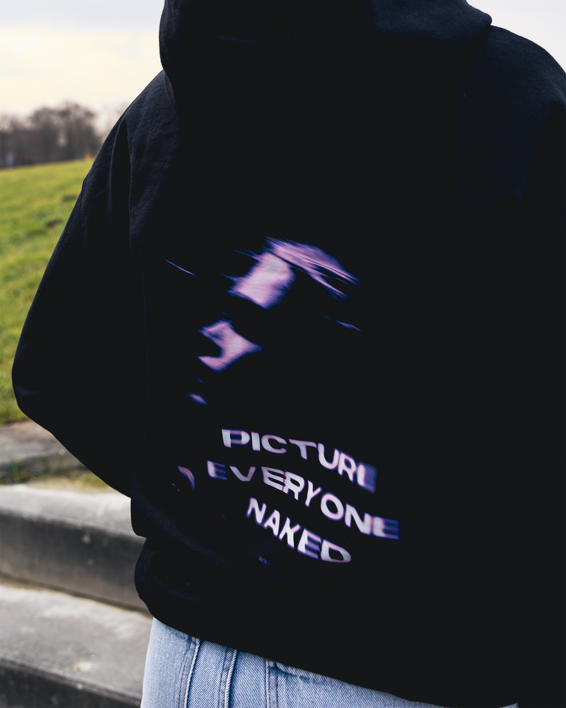 The blurred, mysterious images in the designs represents how we often create distorted ideas of what others think of us. By wearing "Picture Everyone Naked," you invite yourself to see through those distortions, find your inner strength, and feel freer.